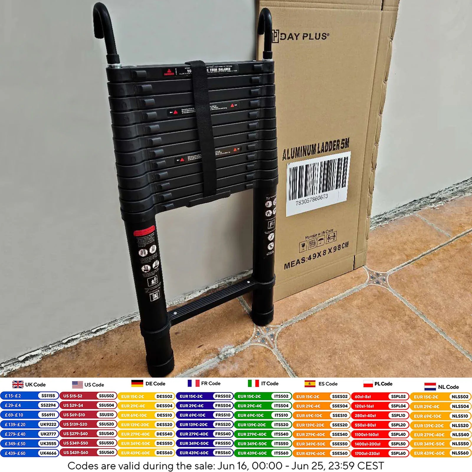 - When closed, the Telescopic Ladder is a compact unit and it will comfortably fit within a car boot or cupboard.