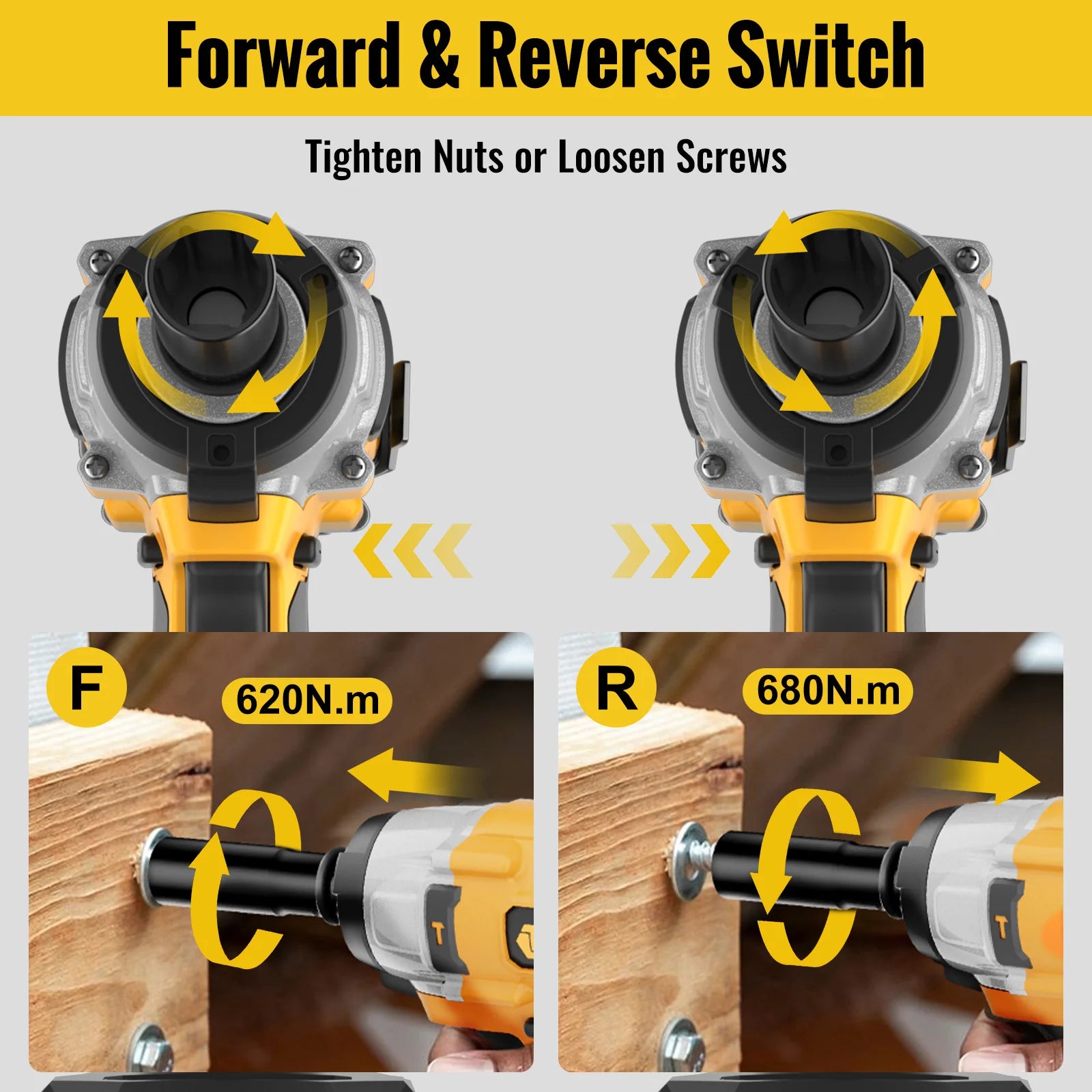 【Contrôle de vitesse réglable】 La clé à chocs de 1/2" prend en charge le réglage de la vitesse de 0 à 4 600 tr/min pour répondre aux différentes demandes de travail, améliorer l'efficacité et économiser l'énergie de la batterie.