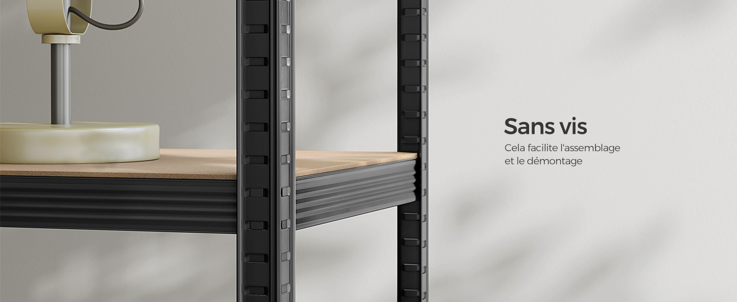 - Structure en acier robuste : Avec un cadre en acier et des planches en panneaux MDF, cette étagère est robuste.