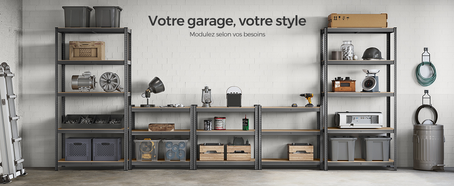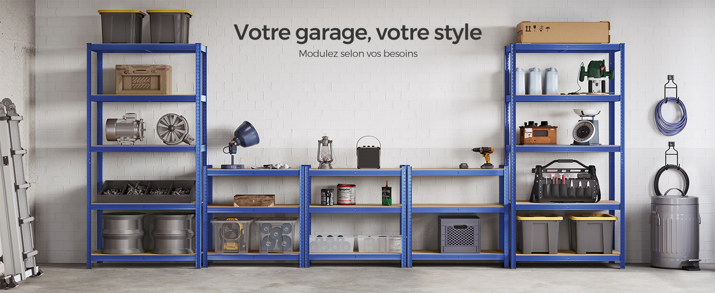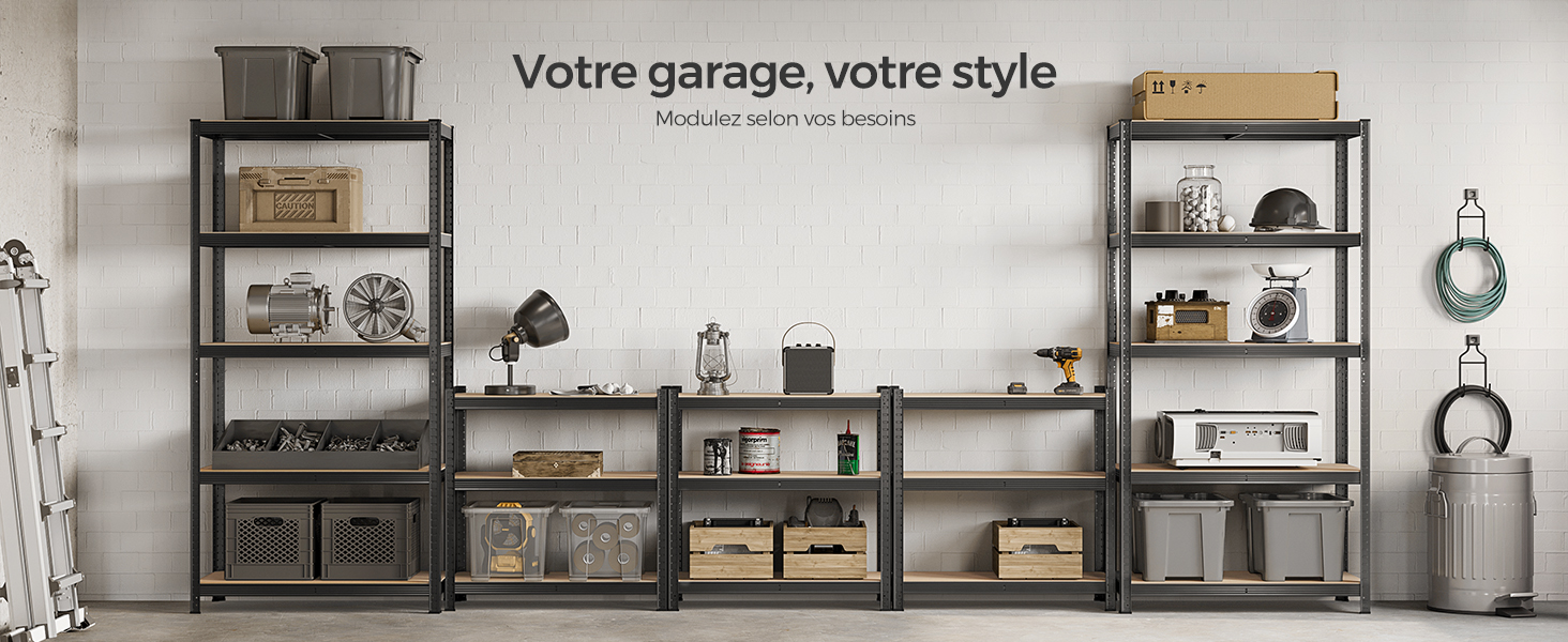 [Robuste et stable]Avec un cadre en acier, chaque niveau supporte jusqu'à 150 kg.Le kit anti-basculement inclus vous permet de fixer cette étagère de garage au mur, verser encore plus de stabilité et une utilisation sûre