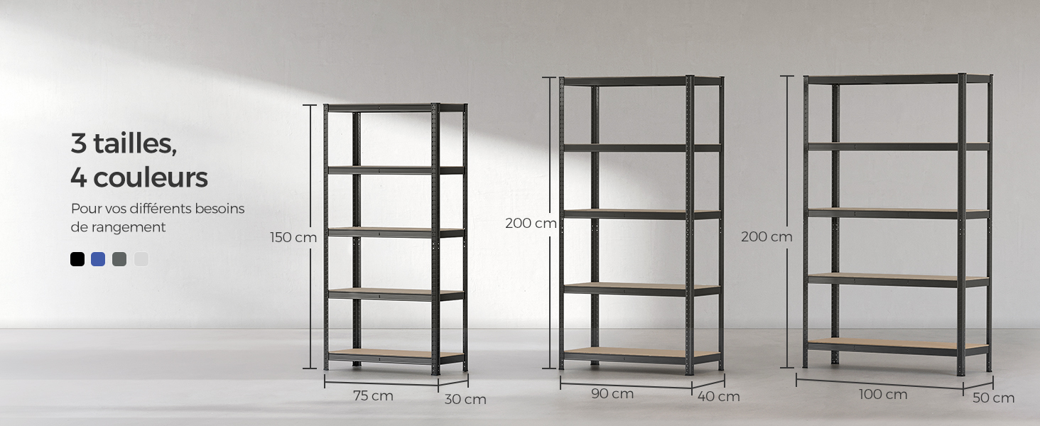 - Capacité de charge élevée : Chaque niveau supporte jusqu'à 150 kg.