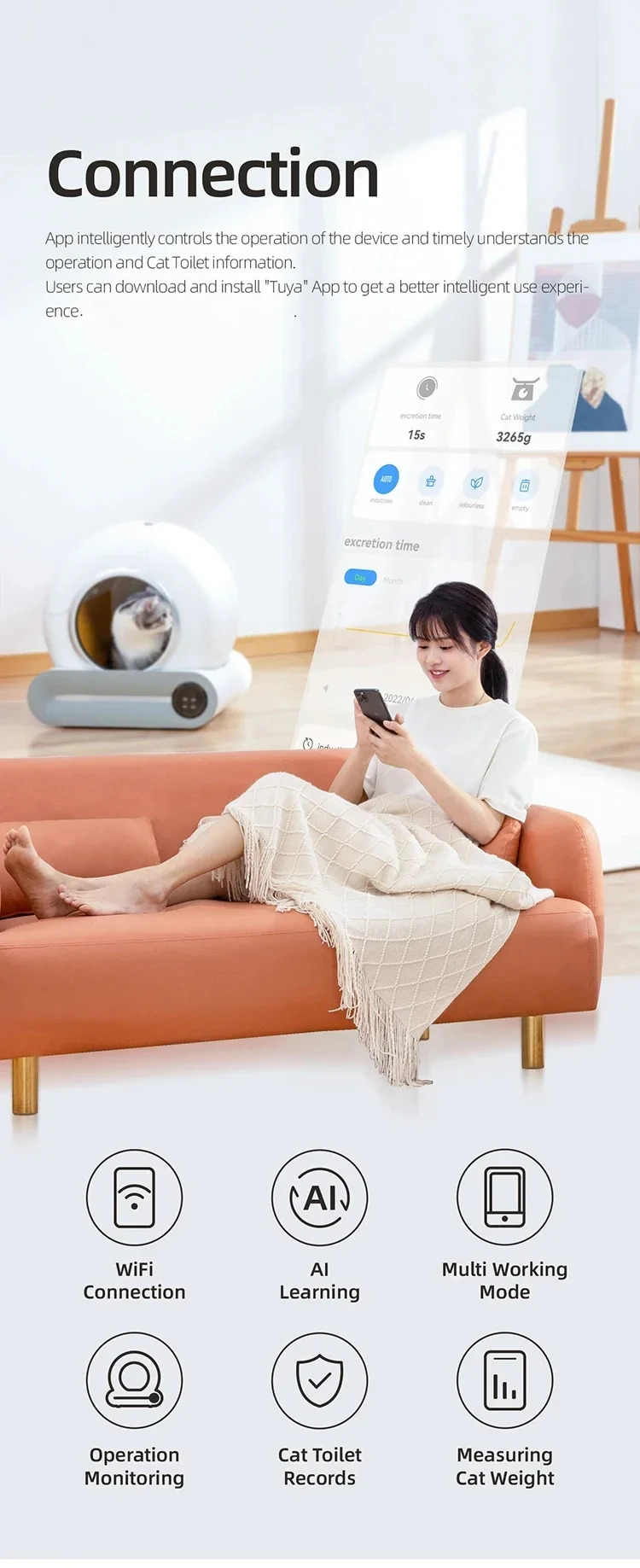 EU Stock Fully Automatic Smart Cat Litter Box Self-cleaning Large Capacity Cat Toilet APP Smart Control,Pet Supplies