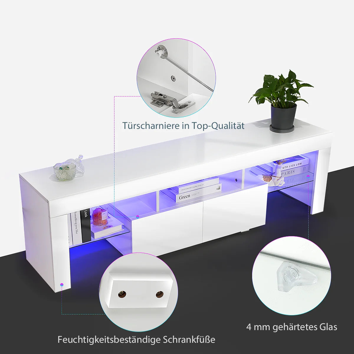 Modern White 160CM TV Cabinet for 32 to 65 inch TV With RGB LED Lights High Gloss Door TV Stand Living Room Furniture TV Cabinet