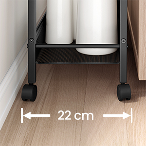 [Parfait pour les petits espaces] Ce chariot fin d'une largeur de 22 cm est idéal pour les petits espaces. Il vous permet de tirer le meilleur parti des petits espaces dans la cuisine,la salle de bain,le bureau,le salon et la chambre pour ranger