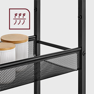 [Beaucoup d’espace] Cette étagère de cuisine à 4 niveaux : 1 dessus pour garder les articles à portée de main,3 étagères grillagées pour les bocaux et les bouteilles,les bords réhaussés les empêchent de tomber