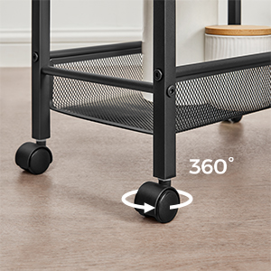 Roulettes pivotantes à 360°Les 4 roulettes pivotantes à 360° vous aident à déplacer facilement votre chariot de cuisine. |