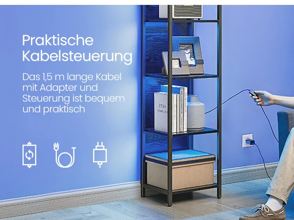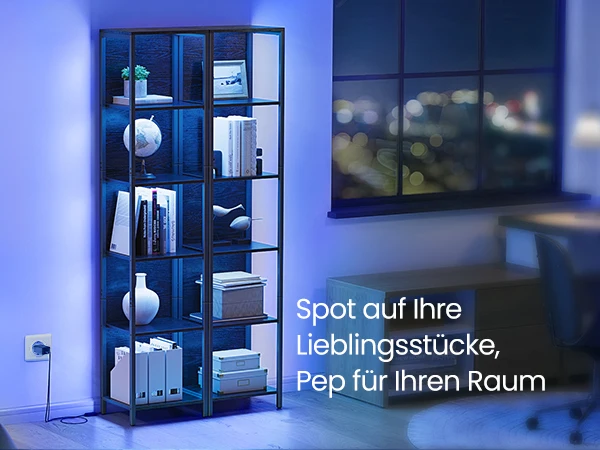 FILE ADJUSTABLE LED LIGHTENDITIONBBThis bookcase has LED lights with 25 colors, 6 brightness levels, 10 flashing modes and 6 flashing speeds, as well as a supplied remote control to create a unique atmosphere